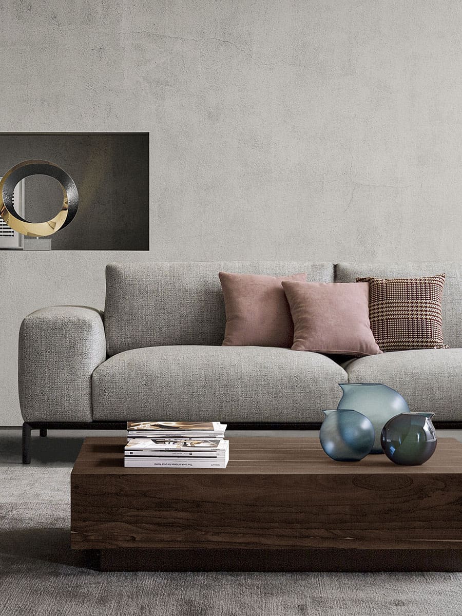 The collections include linear sofas, modular models and sectional solutions designed to adapt to different living room configurations. A wide selection of upholstery, fabrics and finishes allows each product to be customized according to the style of the interior.