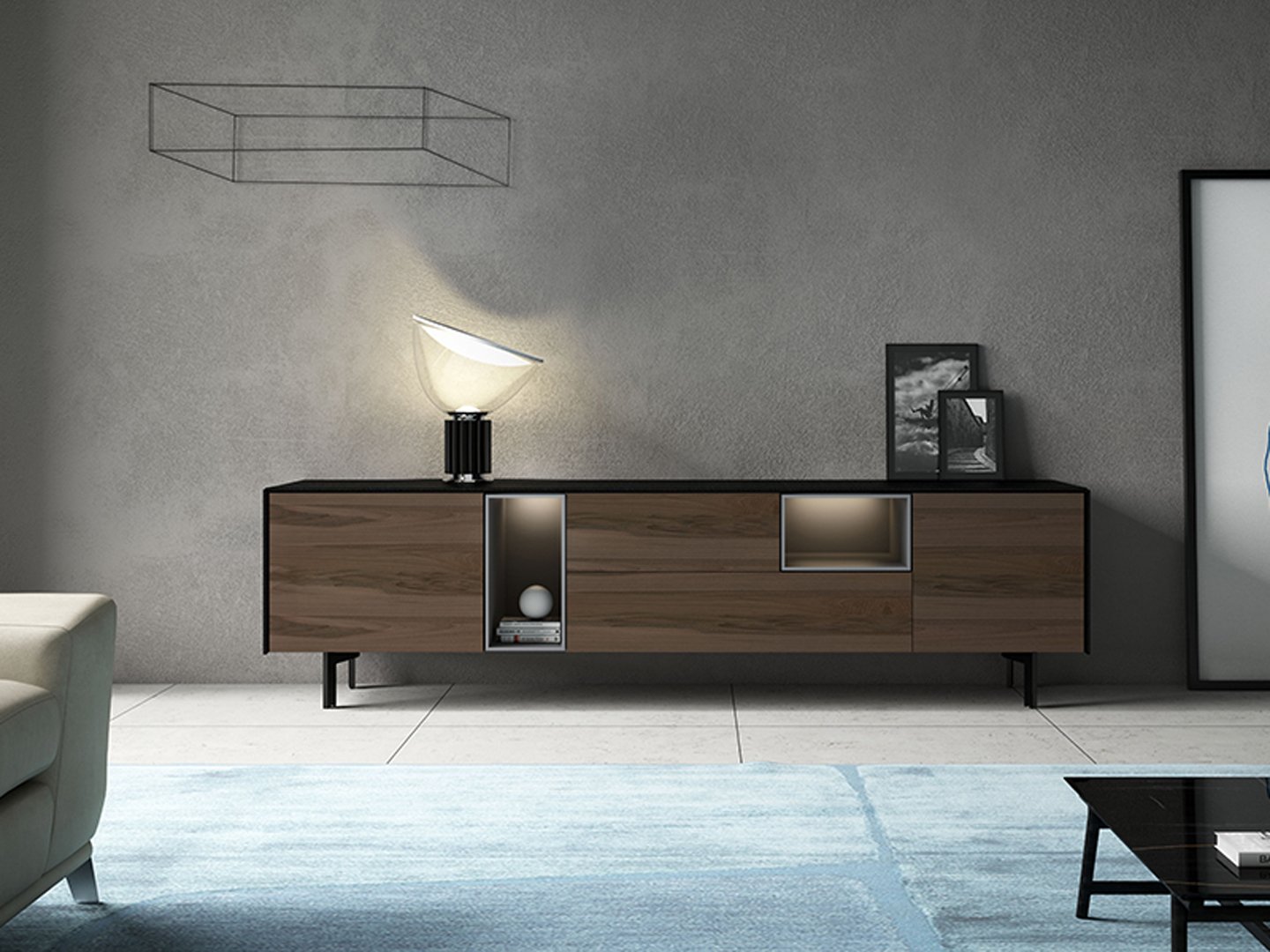 A special mention goes to the TV Cabinets, where Fimar excels with swiveling and rotating models like Flag and Evo, equipped with wireless control via smartphone, to ensure a perfect view from every angle and a high-quality Hi-Fi audio experience. Choosing Fimar means opting for a design that thinks, that solves problems, and that furnishes with a contemporary and smart style.
