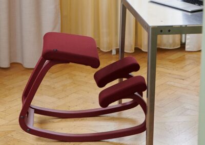 Variable™ Plus by Peter Opsvik is the natural evolution of the iconic ergonomic kneeling chair; the addition of a fixed backrest with a padded cushion further expands the range of possible positions while preserving the postural benefits that made it famous. Finally, Actulum™, also by Peter Opsvik, is the quintessential versatile chair: its gentle rocking motion accompanies any activity at a table — whether working, in a meeting, or at dinner—constantly stimulating muscles and circulation.