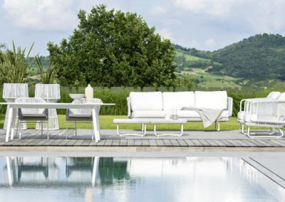 Ma il catalogo di Varaschin non comprende solo sedute ed imbottiti. A completare il range di prodotti ci sono anche tavolini bassi dalle geometrie semplici e dai volumi modellati, tavoli dall’estetica essenziale, tavoli low con altezza di 65 cm, disponibili sia in versione fissa che allungabile, tavolini con stelo centrale, altalene, panchine ed, infine, ombrelloni e gazebi, per creare rilassanti spazi in ombra.